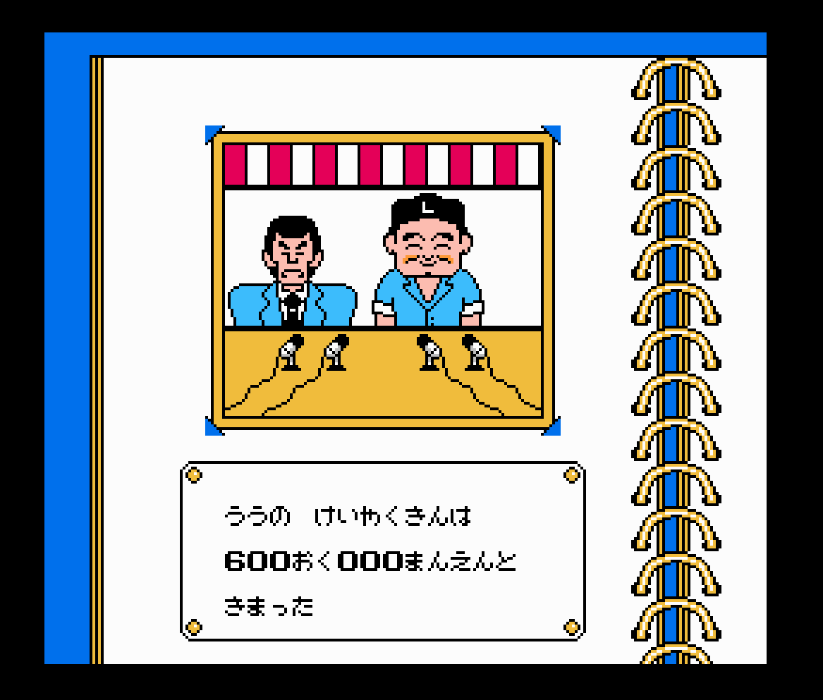 «Aa Yakyuu Jinsei Icchokusen» – На этот раз решил прожить настоящую бейсбольную жизнь на пару с компьютером. Но моей целью была не победа над искусственным интеллектом «NES», а издевательство над собственным персонажем. С помощью магии эмулятора налегал на молоко, что вызывает бурный рост. К концу первого полугодия младшей школы уже превысил 180 сантиметров, к окончанию добавил ещё метр. Экзамен сдал, чуть больше разобрался с правилами, в средней школе подкачал и другие характеристики, не забывая про молоко. Совершеннолетие встретил почти четырёхметровым бейсболистом, а вот мой соперник до сих пор топтался на второй доске, непопулярный и без самоуважения. Пока я наслаждался максимальной суммой за контракт (а это 600 триллионов йен), мой виртуальный противник в слезах и прочих продуктах жизнедеятельности долго и нудно нагонял меня. И тут я понял, что все эти характеристики не важны, ведь на картинках не отражается взрощенный гигант, а показывался стандартный спрайт с выбранным мной лицо