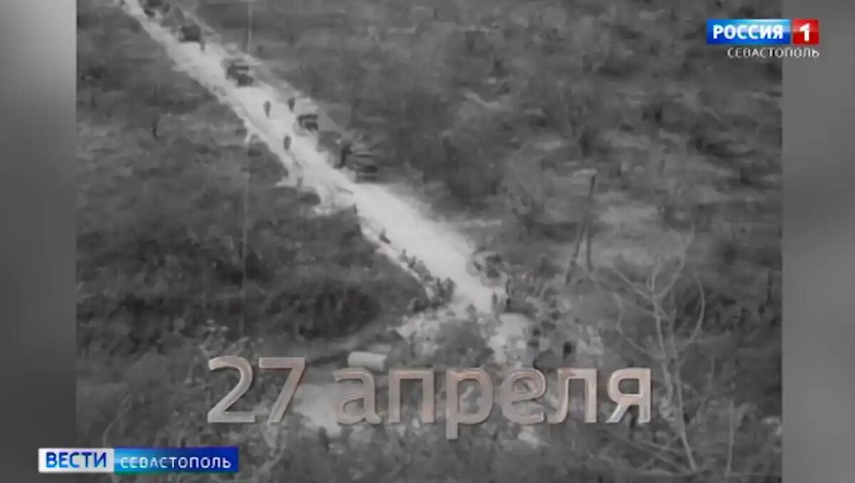 В 20-й день Крымской наступательной операции к Севастополю продолжают стягивать силы. Советские войска получают подкрепление! Ряды 8-й воздушной армии пополнил и 46-й гвардейский женский авиаполк, лётчиц которого немцы прозвали «ночными ведьмами». 27 апреля. К Севастополю продолжали стягивать силы. В этот день на фронт прибыли 13-й гвардейский, 10-й стрелковый и 3-й горнострелковый корпуса. Силы Приморской армии полностью разбили береговую оборону врага на безымянной высоте в полутора километрах от Балаклавы. Ночью торпедный картер на подходе к городу атаковал морской конвой противника — два транспортных судна, корабли охранения и миноносец. Из воспоминаний Героя Советского Союза вице-адмирала Владимира Пилипенко: «Торпедный катер рванулся в атаку. Мои комендоры и ракетчики ждали команды. Быстро сближались. Кругом кипела вода от взрывов. „Огонь!“ Со свистом и шипением взлетели „эрэсы“ и разорвались у самого борта миноносца, а один полыхнул на палубе. А катер (Матвея Прокопьевича) Подым