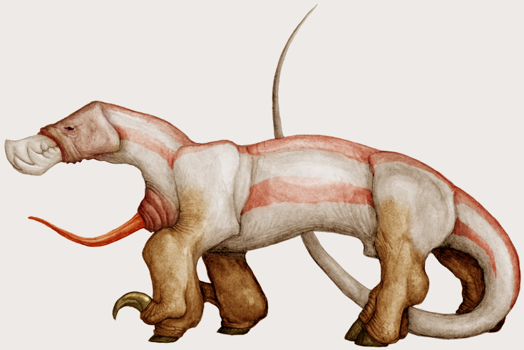 Вот что-то такое можно было бы увидеть и на Земле, если бы в момент выхода жизни на сушу география её напоминала нынешнюю (а лучше - позднемеловую). Несколько принципиально разных групп позвоночных, а, быть может, и членистоногих и высших растений, обитающих в разных местах. По мере движения континентов, их фауна и флора обменивалась бы представителями, что приводило бы к вымиранию многих групп. Здесь Снайад также предоставляет хороший пример. В его географии представлен Ороленд, территория, которая многие сотни миллионов лет была изолированным континентом, но сравнительно недавно столкнулась с большой землёй. Она отделена от неё горами и пустынями, но организмы с большой земли проникли туда, что привело к вымиранию большей части местной фауны. Остались лишь некоторые экзотические реликты, наподобие этих животных, отличающихся уникальным строением половых органов и глаз.