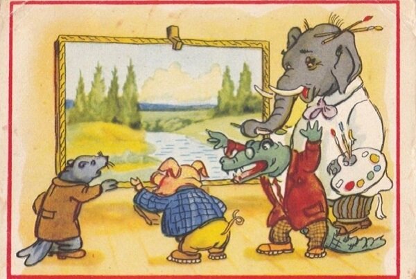 Басня «Слон-живописец» – одна из лучших в творчестве замечательного советского поэта, драматурга и сценариста Сергея Михалкова. Ее сюжет прост и поучителен, а главное, – узнаваем. Слон-художник нарисовал неплохой пейзаж и пригласил друзей на его просмотр, втайне надеясь на похвалу и комплименты. Гости оценили картину, но исходя из личного опыта, высказали свои пожелания, которые Слон удовлетворил. Результат получился плачевным: «Ералаш!» – вынесли вердикт зверушки, взглянув на новый вариант знакомой картины. Можно ли считать Слона настоящим художником, а его гостей – ценителями искусства? Сюжет басни не оставляет на этот счет никаких сомнений. Главный герой творил не для искусства, а для публики. Но на всех угодить невозможно, тем более, – на тех, которые живут своими узкими обывательскими интересами. Приглашенные гости хоть и признали картину удачной, но не получили от ее просмотра эстетического наслаждения. Крокодилу не хватило Нила, Тюленю – льдов и снегов, Кроту – огорода, а Свинь