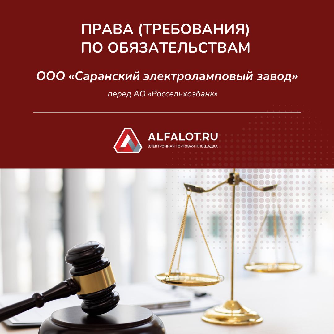 Продаются права (требования) по обязательствам ООО "Саранский Электроламповый Завод" перед АО "Россельхозбанк" с начальной стоимостью 213 883 722,63 ₽