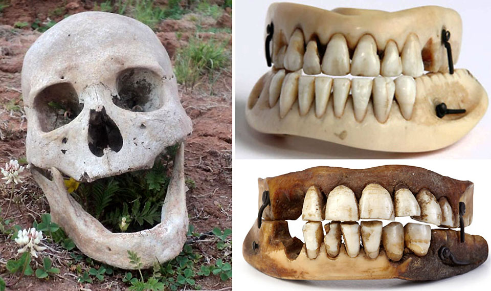 Но как при капитализме, если у тебя чего-то нет, но ты богат, а это есть у того кто беден или недоразвит, то можно взять силой или купить. Умельцы сообразили, что можно выдергивать зубы у бедняков (да и зачем вообще беднякам зубы?). Можно заплатить какому-нибудь здоровому парню с ровными зубами, чтобы он поделился парочкой для протеза. А можно напоить пьянчугу и выдрать у него оставшиеся. Не гнушались расхищением могил и телами казненных преступников. Смотрелись челюсти с вкрапленными в них настоящими зубами гораздо лучше и естественнее.