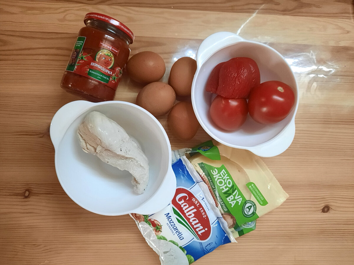 Для основы: Яйцо куриное (С2 -4 шт) 160 гр. Моцарелла 110 гр. Для начинки: Томатная паста 40 гр. Помидор 80 гр. Болгарский перец 80 гр. Куриное филе/грудка 200 гр. Сыр 80гр. Куриное филе отварить в подсоленной кипящей воде до готовности, остудить и разобрать на волокна. В моцареллу натертую через крупную терку добавить яйца,перемешать посолить и поперчить. Вылить полученную смесь на противень, застеленный пергаментной бумагой( у меня фольгой, я опять забыла купить бумагу🙉) разровнять. Выпекать в заранее разогретой до 200 градусов духовке, пока основа не подрумянится, примерно 10-12 минут. Вынуть основу, смазать томатной пастой. Выложить куриное филе, нарезанный кубиком или полосками болгарский перец, помидоры, нарезанные полу-кружочками, посыпать натертым сыром. Поставить пиццу снова в духовку на 10-15 минут, пока сыр не расплавится. Готово!