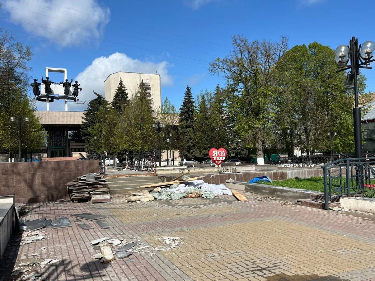 В Туле начали ремонтировать фонтан в сквере Тульского академического театра драмы