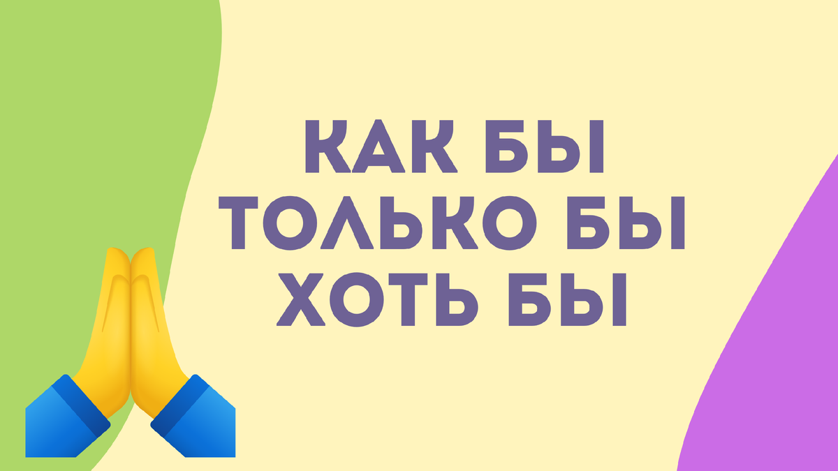 КАК БЫ / КАК БЫ НЕ ТОЛЬКО БЫ / ТОЛЬКО БЫ НЕ ХОТЬ БЫ / ХОТЬ БЫ НЕ После этих слов используем ИНФИНИТИВ или ГЛАГОЛ ПРОШЕДШЕГО ВРЕМЕНИ. Давай быстрее! Как бы не опоздать на поезд! - Hurry up and get ready so as not to be late for the train! Только бы не было дождя сегодня! - Only hope it won’t rain today! Хоть бы сдать экзамен по русскому! - If I could just pass the Russian exam and get it over with! Рассмотрим несколько ситуаций: Как можно отреагировать?