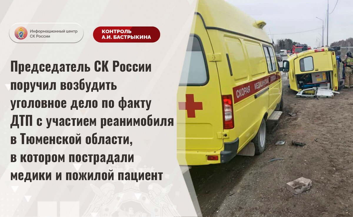 Председатель СК России поручил возбудить уголовное дело по факту ДТП с участием реанимобиля в Тюменской области, в котором пострадали медики и пожилой пациент