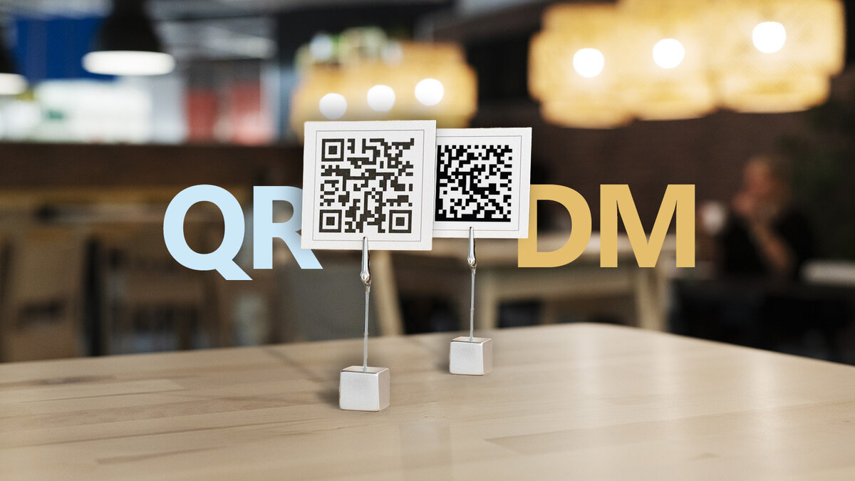 QR-код и DM-код являются разновидностями двумерного типа штриховых кодов, позволяющих зашифровывать информацию в виде графического элемента.