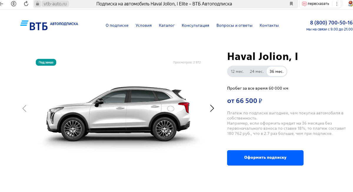 Разберемся с автоподпиской. Некоторое время на своем канале "Институт любви к ДПС" я разбирал каршеринг как головняковый и по сути очень дорогой сервис (дороже такси). Сейчас здесь разберем автоподписку на примере ВТБ. ВТБ взял только потому что они попались первыми и никакой особой любви и привязанности к этому банку у меня нет :). Взял самый популярный в РФ автомобиль после начала санкций - Джолион, производства Тула. Все начинается с предложения. Почитаем его Платеж по подписке выгоднее, чем покупка автомобиля в собственность.