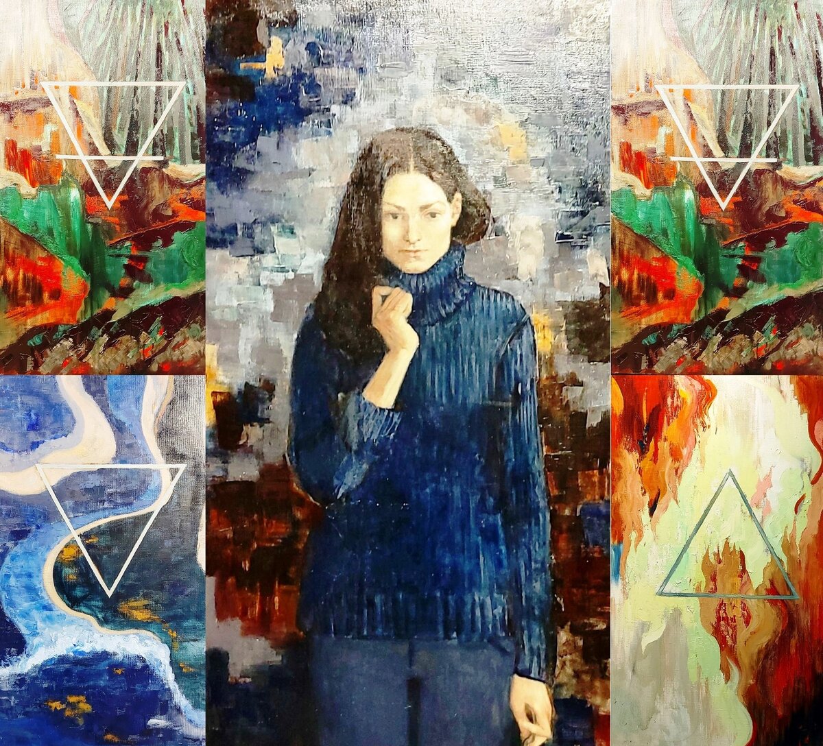 Пентаптих «Автопортрет и квадриптих Стихии: Воздух, Вода, Земля, Огонь» это единственная полноформатная работа 2024 года, представленная автором на выставке. Все остальные произведения этого года, представленные на выставке, это малоформатные эскизы автора. Каждый из них значим по своей идеи и цветовым сочетаниям. На основе каждого из них можно создать полноформатную картину. Я надеюсь, увидеть воплощение этих идей в жизнь.