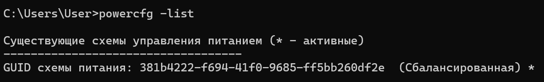 Запускаем командную строку от имени администратора и вводим powercfg -list Смотрим ID схемы питания и вставляем ее в первую строку кода после ID= (ниже). Копируем весь код целиком, вставляем в окно командной строки (для вставки нажать правую кнопку мыши) и нажимаем Enter, иначе последняя строчка кода не активируется. set SCHEMA_ID=КОД_ВАШЕЙ_СХЕМЫ_ПИТАНИЯ
