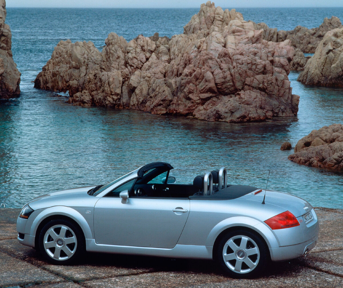 Оснащенный на старте продаж 1,8-литровым 20-клапанным турбированным четырехцилиндровым двигателем с двумя ступенями мощности: 180 л.с. с передним и полным приводом и 225 л.с. только с приводом quattro, TT расплачивался в вопросах управляемости за свой вес в 1 515 кг и распределение массы почти на 60 процентов на переднюю ось. Тем не менее, характеристики оказались весьма интересными: менее мощному из них потребовалось менее 8 секунд для разгона до 100 км/ч и максимальной скорости 225 км/ч, в то время как полноприводный автомобиль показал 7,1 секунды и 237 км/ч. В 2001 году модельный ряд пополнился 150-сильным 1.8, а в 2003 году появилась версия quattro, оснащенная 250-сильным 3.2 V6 от Volkswagen, сопряженным с 6-ступенчатой коробкой передач с двойным сцеплением. Рестайлинг 2002 года был минимальным: новые 17-дюймовые легкосплавные диски и ретушь силовых агрегатов. Кроме того, появился пакет S-Line, который придал экстерьеру и интерьеру более спортивный характер, в основном повторяя облик 3.2.