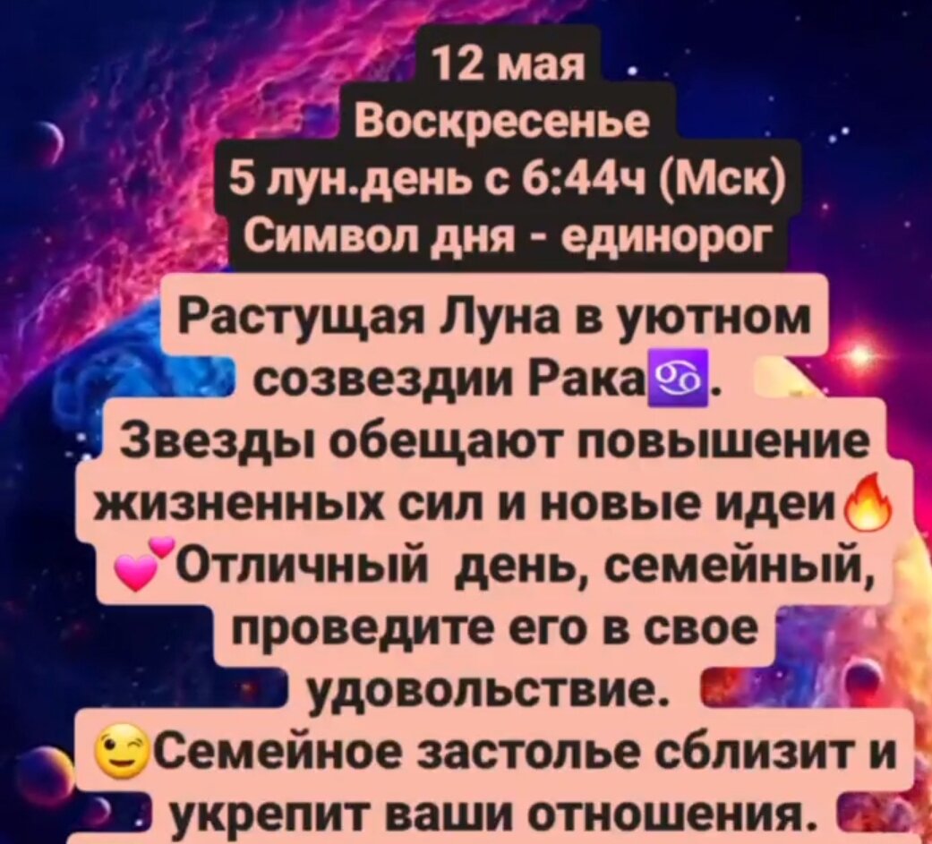 Растущая Луна в уютном созвездии Рака♋️. Звезды обещают повышение жизненных сил и новые идеи🔥 💕Отличный день, семейный, проведите его в свое удовольствие. 😉Семейное застолье сблизит и укрепит ваши отношения. ✅️Отличный день для шопинга и особенно крупных , семейных покупок⭐️ ✅️ новые дела и идеи принесут удачу🙏 #гороскоп #астрология #луна #астрологияонлайн #астропрогноз #овен #телец #близнецы #рак #лев #дева #весы #скорпион #стрелец #козерог #водолей #рыбы #затмениесолнца #солнечноезатмение #затмение #новолуние