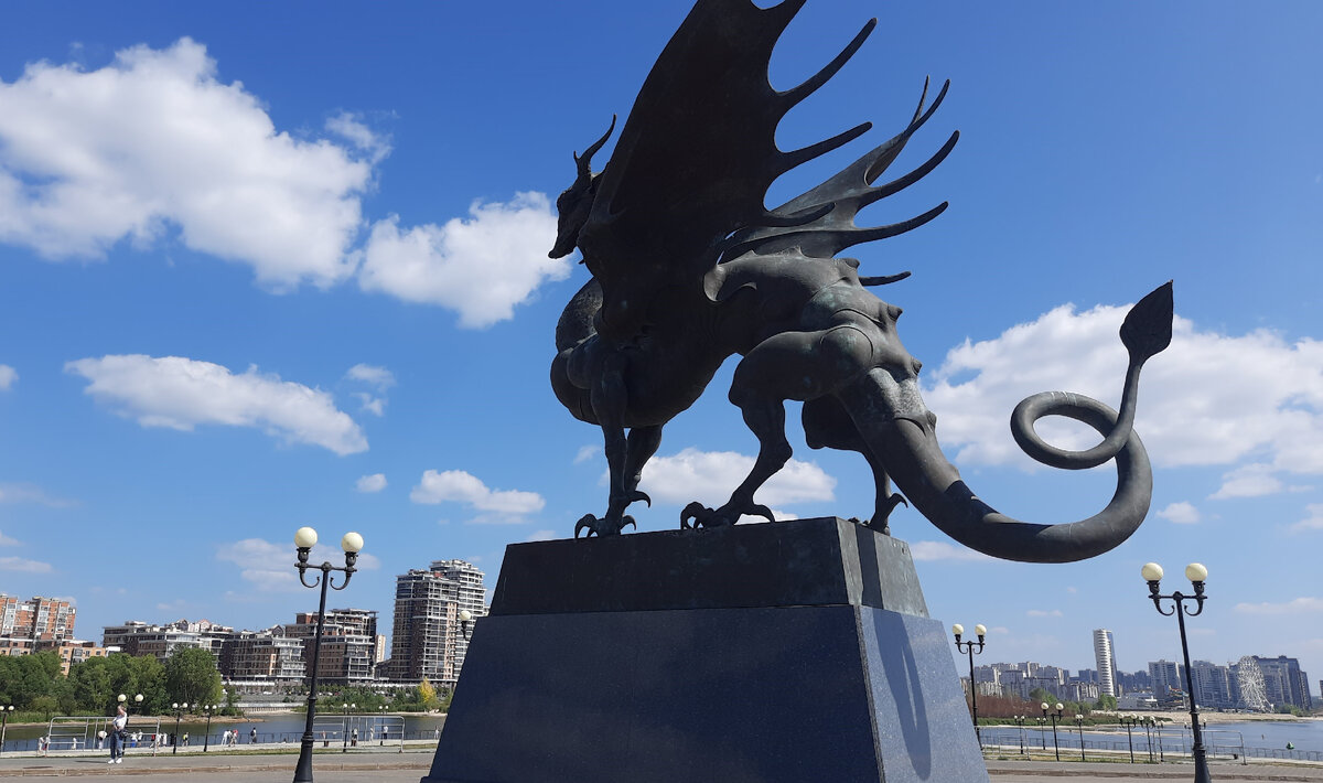 Казан – это уникальное здание дворца бракосочетаний, ставшее новой достопримечательностью столицы Татарстана. Он был построен в 2013 году по проекту архитектора Даши Намдакова, а в 2016 году вокруг здания появились великолепные скульптурные композиции этого автора.