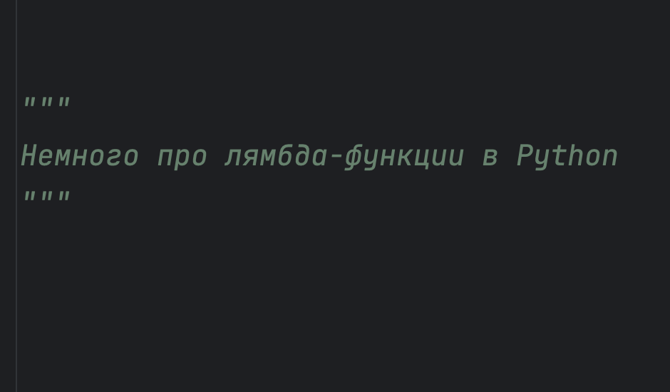 Что это такое? Lambda или анонимные функции - это по сути небольшие функции без имени, написанные в одну строку. Для их объявления нам не нужно следовать классической схеме - указывать литерал def и имя будущей функции. Нам достаточно следовать такой конструкции: lambda arguments : expression Это и есть весь синтаксис лямбда-функций. Главные моменты: Как и когда использовать? Чаще всего, лямбда-функции используют в нескольких случаях: Рассмотрим чуть подробнее. Лямбда-функция как аргумент в других функциях Очень удобно применять лямбда-функции при работе с map() и filter(). Допустим, нам нужно преобразовать список. Здесь нам поможет функция map(), которая применит лямбда-функцию ко всем элементам списка: >>> ['new_one', 'new_two', 'new_three'] Лямбда помогает нам задать нечто вроде правила, по которому будет обрабатываться объект. В нашем примере мы добавили префикс к каждому слову в списке. Эту же операцию можно решить и с помощью list comprehension (списочных выражений): new_list = [