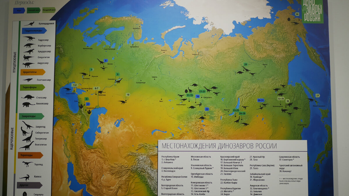 Мы привыкли думать, что динозавры и палеонтологические раскопки — это что-то далекое. Ну действительно, казалось бы, Россия и динозавры никак не связаны! Однако эти удивительные животные господствовали на планете десятки миллионов лет и за это время они освоили все природные зоны и заселили практически все уголки планеты. Ныне известны и полярные динозавровые фауны, в том числе — с территории нашей страны: из Кемеровской области, Якутии и т.д. Изучение динозавров в нашей стране началось ещё в конце XIX века, активно шло в течение всего советского периода и с новым импульсом продолжается в наше время. На выставке представлены, в том числе, находки последних лет. Тут вам и азиатский родственник тираннозавра килеск, и амурозавр из массового местонахождения в Благовещенске и другие. А встречает посетителей давно уже всем полюбившийся небольшой рогатый пситтакозавр.
