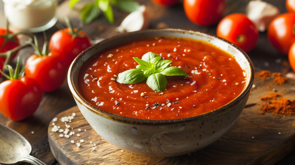 Сметанно-томатный соус является вкусным и универсальным дополнением к разнообразным блюдам. Этот соус сочетает в себе кремовую мягкость сметаны и кисло-сладкий вкус томатов, делая его идеальным сопровождением для пасты, мясных блюд, а также в качестве основы для запеканок. Происхождение такого типа соусов можно отследить в европейской кулинарии, где сметана и томаты часто используются для приготовления соусов и рагу. Ингредиенты Пошаговый рецепт Советы по хранению Сметанно-томатный соус лучше всего использовать сразу после приготовления, но его можно хранить в холодильнике в герметичной емкости до 3 дней. Перед повторным использованием разогрейте соус на медленном огне, возможно, добавив немного воды для восстановления консистенции. Полезные свойства основного ингредиента Томаты, ключевой ингредиент в этом соусе, являются богатым источником витамина C, калия, фолиевой кислоты и антиоксиданта ли копина, который признан способствующим снижению риска развития хронических заболеваний, вклю