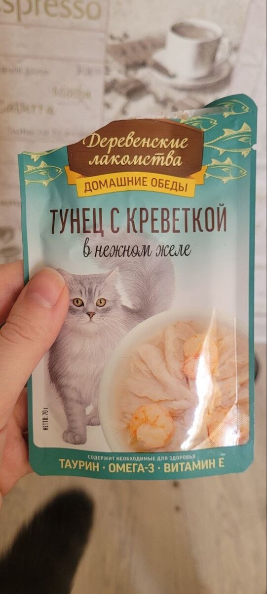 Время шло, вкусы менялись, решили перейти на корм по интереснее, сейчас покупаем грандорф с рыбой или 4 мяса, отлетает только так) Очень любит всякие пюрешки с рыбой или мясом, на них особая реакция, хвост трубой, шуршание пакетика узнаёт из тысячи, даже не даёт выложить всё содержимое в миску, моментально уплетает и мурчит довольный. Берём ещё рыбку в пакетиках, по типу Горбуши, делим на части, иначе слопает всё за раз и сотанется только сухой корм. Готов продать одну из 9 кошачьих душ за подушечки с начинкой.