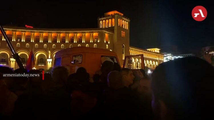 На площади Республики, во время акции протеста движения «Тавуш во имя Родины» водитель самосвала направил машину в сторону митингующих, сообщил корреспондент Armenia Today.