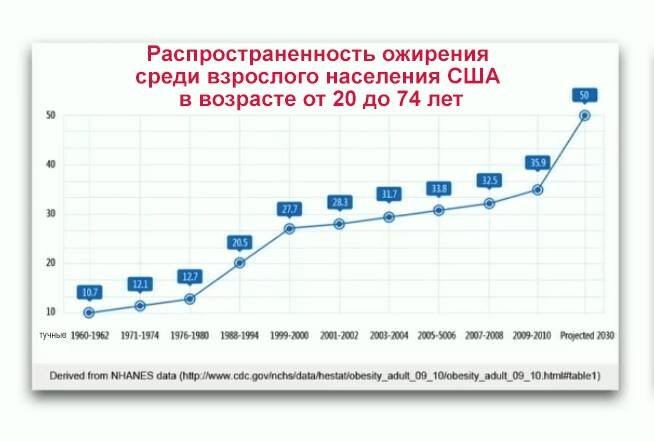 Смотреть от начала до 3:20 - по теме этого канала. Эпидемия ожирения уже начала создавать проблемы с мобресурсом. Проблема эта давнишняя, начало ей положено несколько десятилетий назад: Кто не в курсе: мобресурс - это вся совокупность мужчин страны, которых можно поставить под ружьё, если что. И уже ясно: если толстый - каждый третий, то у вооружённых сил - проблемы с живой силой. То, откуда взялась эпидемия ожирения в США - ни для кого давным-давно не секрет: огромное потребление сахара. О том, что массовая американская еда сильно перегружена сахаром - вещают практически все, кто рассказывает о реальной жизни в Америке. От себя добавлю - и немалые количества крахмала - starch, старч. Возьмите любую консервированную еду с Запада и поищите это слово - в 90% случаев вы его найдёте. Между прочим, (о ужас!) сейчас, с подачи американцев, сахар стали использовать даже при жарке мяса - он создаёт вкусную коричневую (карамель же!) хрустящую корочку на поверхности. В эту же копилочку - трансжир