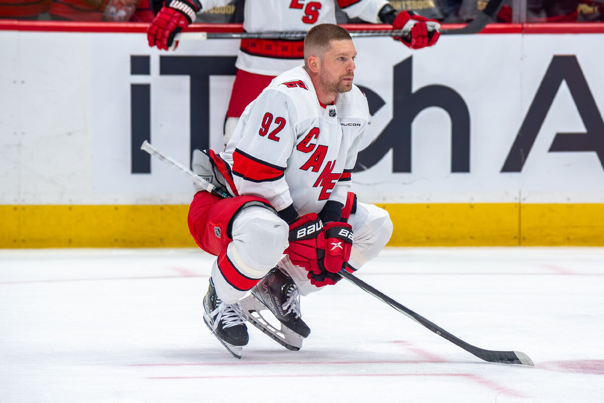 Форвард «Каролины Харрикейнз» Евгений Кузнецов не принял участия во второй игре 2-го раунда серии с «Нью-Йорк Рейнджерс» (3:4 2ОТ, 0-2). По словам журналиста Уолта Раффа, Кузнецов не принимал участия в раскатке по «неизвестным» причинам. Эмили Каплан из ESPN уточнила позже в эфире, что он отсутствует в составе по решению главного тренера. 31-летнего россиянина заменил нападающий Максим Комтуа, для которого матч за «Каролину» стал вторым в текущей кампании, если учитывать регулярный чемпионат. Отметим, что в стартовой встрече серии с «синерубашечниками» Евгений получил малый штраф за удар клюшкой Адама Фокса. Четырнадцать секунд спустя Винсент Трочек забил гол в большинстве, обеспечив «Рейнджерс» преимущество 3:1. Посмотреть видео
