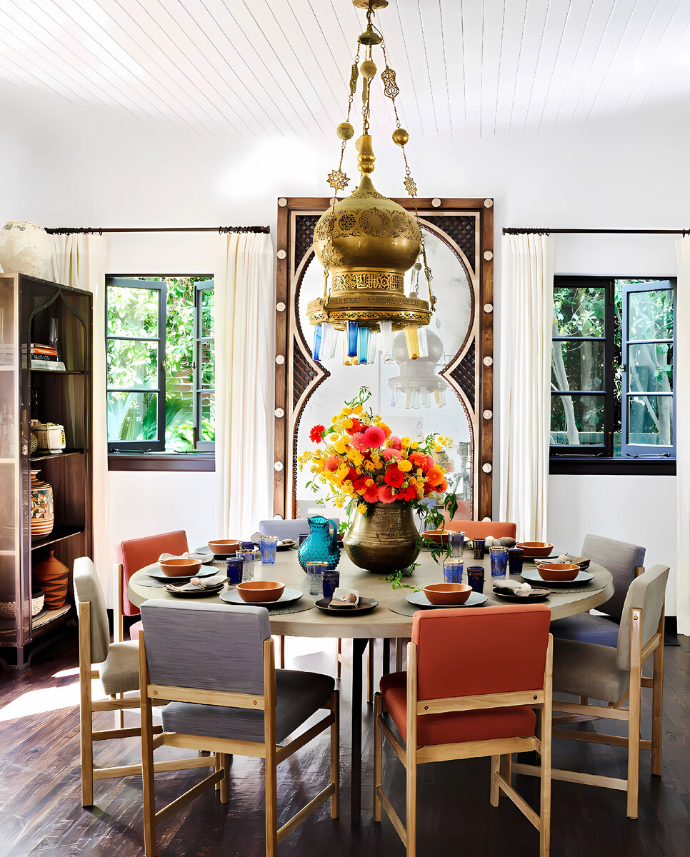 Забудем про эти наборы мебели, как из каталога. Теперь в тренде - микс! Смотрите, у Алессандры круглый стол, а вокруг - стулья, как братья-близнецы, но каждый в своем цвете. Вывод простой: не бояться экспериментировать и применять смелые решения в интерьере. 2. Золотые штрихи. Как добавить роскошь в интерьер без лишних трат Готовы добавить немного блеска в свой дом? Золото, оно как магнит, правда? Оно воплощает роскошь и красоту, и в интерьере у Лорен Конрад это просто великолепно смотрится. Несколько золотых акцентов, и вот