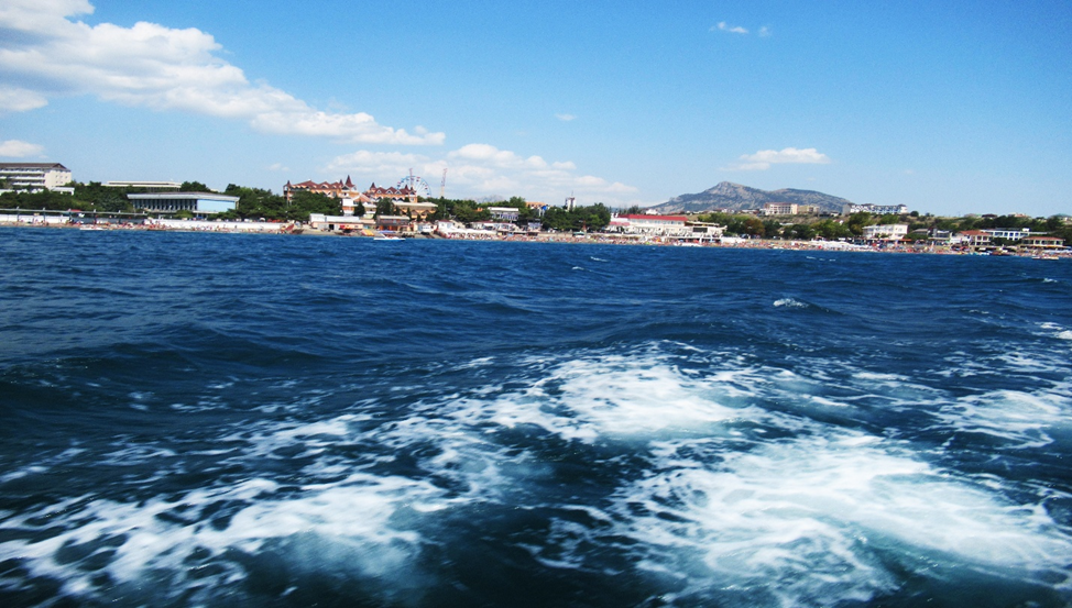 Понимаю, что быть на море и не потюленить пару дней, укладывая себя на песочную сковородку, по крайней мере глупо, а по большому счету вредно для здоровья и противоестественно в глазах окружающих. Перемещение по морю с помощью морских средств перемещения Таким образом нашей колесной базе был предоставлен отгул и в приоритете замаячил морской проминат на катере. Куда? Единогласно решили встать на одну ногу с царями и вывести свои особы на Царский пляж. Вот чем мы хуже этих коронованных? Оседлали симпатичный катерок (про цену и не спрашивайте – кошмары замучат), отдали кому-то концы от причала Судака и по компасу двинули в искомом направлении. Во завернул, что тебе морской волк) Плавные качели небольших волн, мерное постукивание мотора катера, белые бурунчики на лазурной воде, соленые брызги, проплывающие мимо величественные горы – полностью соответствовали моему понятию об отдыхе. На тропу Голицына мы теперь смотрели не напрягаясь Остался позади грот Шаляпина, семидесятиметровый проход