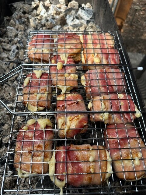 Бутерброды с беконом и сыром, запеченные на углях — очень подходящий рецепт для приготовления на даче, готовиться быстро и вкусно! Ингредиенты: Бекон 1 упаковка - Хлеб( черный или белый) - Сыр - Помидоры Как приготовить: На ломтик хлеба положить кусок сыра, ломтик помидора и обернуть беконом. Обжариваем на мангале с двух сторон, буквально по 5 минут.