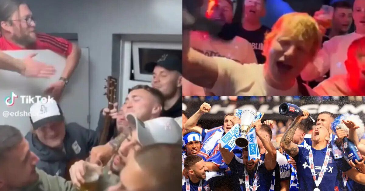 Эд Ширан празднует выход «Ипсвича» в АПЛ в туалете в компании игроков клуба📹