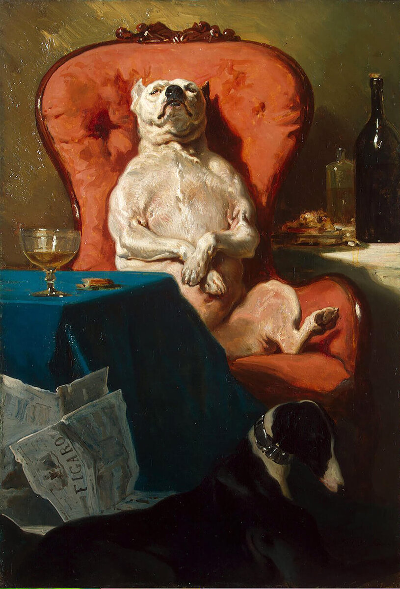 «Мопс в кресле» — одна из самых ярких и известных картин французского художника Альфреда Дедре. На картине изображён развалившийся кверху брюхом мопс, задремавший в кресле с красной обивкой. На столе с синей скатертью стоит бокал с каким-то напитком, ниже видна смятая газета, а на полу лежит борзая в ошейнике. Картина написана в 1857 году и носит явный пародийный характер. Доподлинно известно, что Дедре в виде мопса изобразил французского журналиста Ипполита де Вильмессана, который за несколько лет до написания картины возобновил выпуск той самой газеты. В виде изящной гончей — графа Шарля де Монри, ближайшего друга журналиста, брата президента Французской республики Наполеона III.