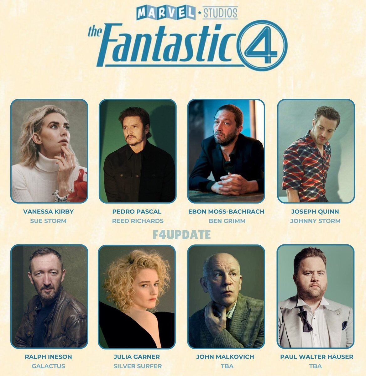 Актерский состав перезапуска «Фантастической четверки» продолжает пополняться. К касту присоединились Джон Малкович и Ральф Айнесон, сообщает Deadline. Кого сыграет Малкович, пока неизвестно, а вот Айнесону досталась роль главного злодея Галактуса. Ранее к актерскому составу примкнули Джулия Гарнер и Пол Уолтер Хаузер. Что касается основного каста, то Мистера Фантастика сыграет Педро Паскаль, Человека-факела — Джозеф Куинн, Женщину-невидимку — Ванесса Кирби, а Существо — Эбон Мосс-Бахрах. Перезапуск «Фантастической четверки» положит начало шестой фазе вселенной. Режиссерское кресло фильма займет Мэтт Шэкман, работавший над сериалом «ВандаВижен». В комиксах «Фантастическая четверка» — это астронавты, получившие свои суперспособности в результате воздействия космических лучей во время научной экспедиции.