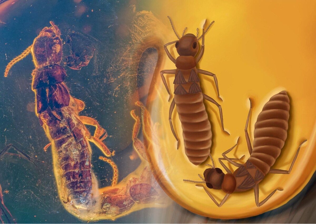 В балтийском янтаре обнаружили двух термитов, каждый из которых достигал чуть больше полсантиметра. Пойманные в смоляную ловушку насекомые оказались самкой и самцом вида Electrotermes affinis из семейства суходревесных термитов (питаются сухой древесиной, которая практически не содержит влаги). разбор имени Electrotermes affinis (неофициальный, от админа): -балтийский янтарь древние греки называли "electronum" - отсюда и родовая часть Electrotermes -affinis - переводится как смежный/соприкасающийся - отсылает на положение насекомых Но самое интересное в находке - это положение тел парочки - ротовые органы самки касались кончика брюшка самца - у современных муравьёв и термитов это называется тандемным бегом, при котором мужская и женская особь следуют друг за другом в поисках места для спаривания. Вероятно, эоценовые "влюблённые" увязли не мгновенно и какое-то время продолжали двигаться, поэтому их тела расположились не друг за другом, а параллельно. Чтобы проверить эту гипотезу, провел