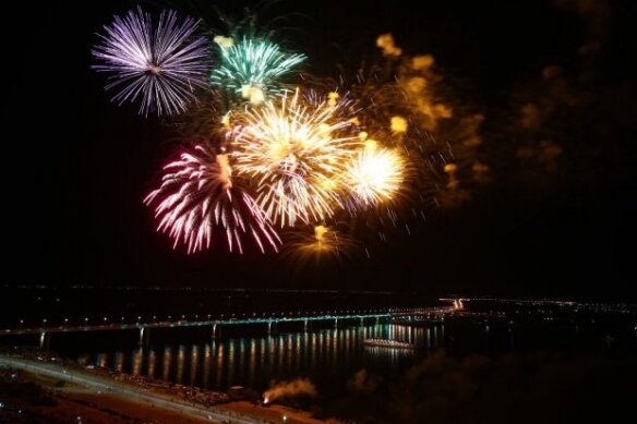 Артиллерийские залпы в Волгограде были произведены с набережной имени 62-й Армии ровно в 22.00. Яркие огни праздничного фейерверка озарили вечернее небо города-героя.