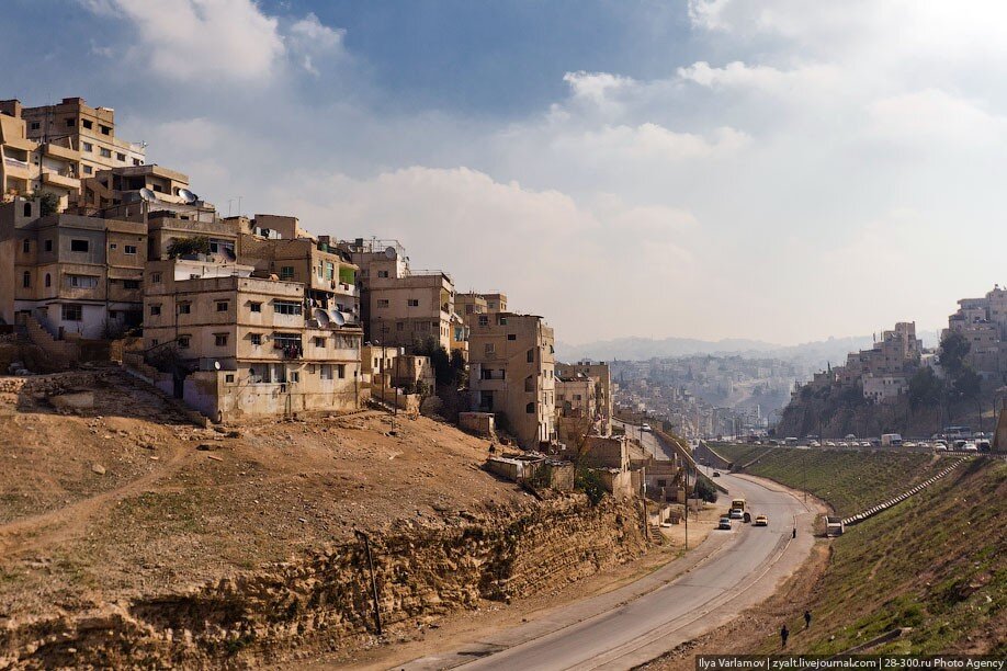 04. Как и многие другие столицы, Амман расположен на семи холмах, которые представлены на флаге Иордании семиконечной звездой. Состоятельные люди в Аммане предпочитают селиться ближе к окраине. Столица Иордании - город не слишком зеленый, но в районах вилл, где нет такой скученности, как в центре, каждый старается окружить свое жилище деревьями. Здесь тихо, безлюдно, воздух чистый, почти загородный. Не только на окраинах, но даже в старой части города застройка в основном современная. Меж тем люди живут на этой земле многие тысячи лет.