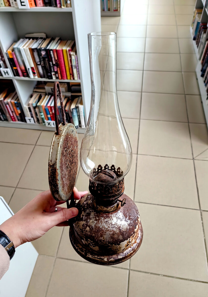 На работе, кстати, меня опять ждал приятный сюрприз! Оля, сотрудница нашего учреждения, зная, что я блогер и собиратель древностей, оставила для меня в кабинете старинную керосиновую лампу. Настоящую, с фитилём. Я её немного почищу от ржавчины, заправлю (не знаю пока, где найду керосин, но попробую) и буду зажигать вечерами.