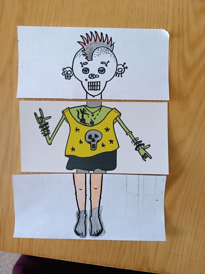 После короткого разговора я попросила мальчика нарисовать безопасное место – то, в котором он чувствовал бы себя защищенным. Денис нарисовал палатку и объяснил, что любил выезжать на природу с мамой и папой. Он рассказал, что ему очень нравилось быть с ними и делать все вместе: жарить шашлыки, смотреть на костер, петь песни под гитару. Затем я предложила Денису поиграть в роботов. Т.е. он – создатель роботов и ему предстоит сейчас создать робота похожего на него. Использовала колоду «Роботы». Получился такой робот-панк с ирокезом на голове, с пирсингом. Поговорили о его роботе (колода "Роботы" хороша тем, что помимо цветных карточек, можно выбрать черно-белые и дорисовать так, как чувствуется в данный момент):