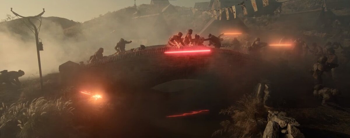 Началась третья фаза битвы. Ну, если их так делить: первая закончилась бегством Нобла, вторая атака была отбита, теперь на поселян пошла третья волна штурмовиков, и у них даже есть танк на паучьих ножках.