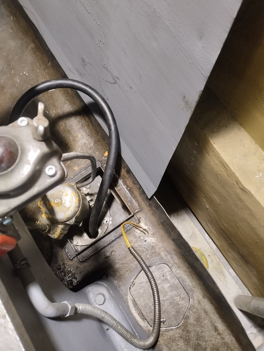 Продолжаю. Бак сож выкатной на 40 литров, помпа ПА-45. Отчистил и выкрасил экран. Полочка для подручного инструмента из крышки электрошкафа и полоски оцинковки лежит на подкладках из диэлектрического коврика. Гибкая подводка 200мм, этого явно мало. Переедет на отрезной станок, сюда закажу подлиннее.