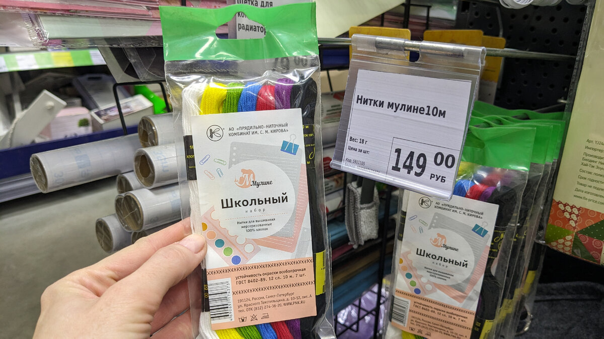 Здравствуйте, уважаемые зрители! Проезжали мимо магазина Фикс Прайс, заехали за сливками для кофе. Постоянно их там покупаем, те, что в индивидуальных упаковочках) Пользуясь небольшим количеством времени, прошла по рядам, посмотрела, что продается, что нового и интересного. Снова привезли набор "Нитки мулине". Написано, что набор "школьный". В составе хлопок 100%. В упаковке 7 моточков, все разного цвета и очень яркие. Длина 10 метров каждого. Особопрочная устойчивость окраски. Российское производство, г. Санкт-Петербург. Цена набора 149 руб. В садовом отделе мы ранее смотрели новинку - "Коврик для пересадки растений". Это новинка именно этого года, в прошлых сезонах такие коврики не привозили. Я много раз после привоза смотрела на этот коврик, а сегодня посмотрела и поняла, что мне нужно) В этом году я посеяла много цветов и нужен постоянный уход. Расстилаю скатерть, но коврик мне понравился тем, что у него уголки защёлкиваются кнопками и получается коврик с бортиками. В составе пол