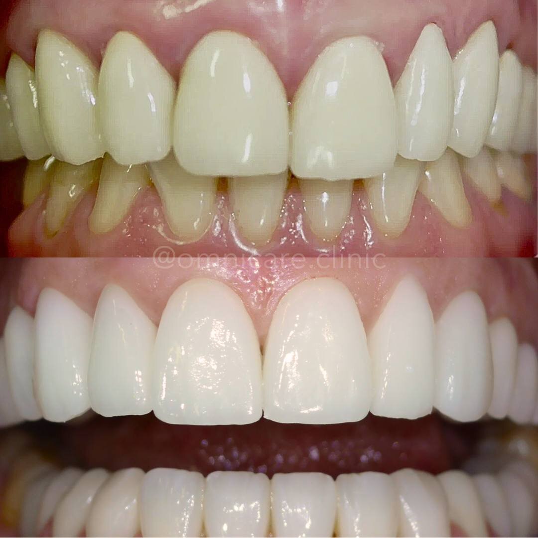 К нам обратилась очаровательная женщина с жалобой на дискомфорт, боль в десне и неприятный запах изо рта. Плюс ко всему, не устраивал цвет ранее установленных коронок.