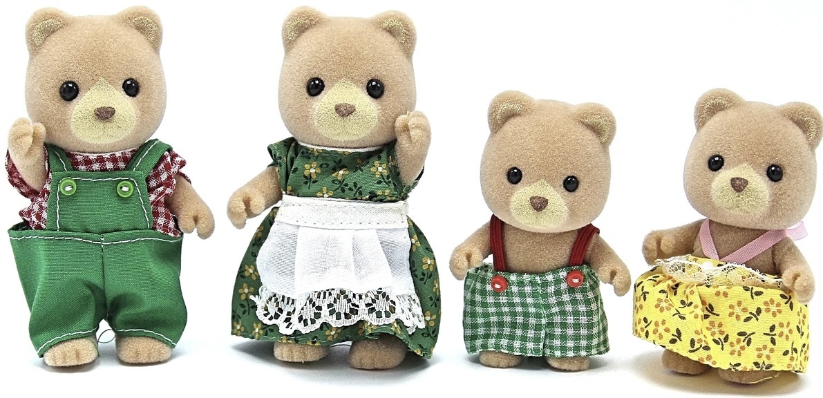 Пока у меня не появилась эта семья, я ошибочно полагала, что эти мишки меньше обычных. Но нет, они стандартного размера, так что фамилия семьи вроде никак не обыгрывается. Возможно, мишки получили такое имя, так как их сравнили с другими сильванскими семьями медведей, которые выпускались в то время: мармеладными, Эвагрин и Тимбертоп. Мишки из этих семей по размеру были больше стандартных сильванских фигурок. Для мишек использован тот же молд, что для медведей Бербери, Порридж, Калби (самых дорогих мишек Сильвании), редкого выпуска мармеладных мишек, который выходил только в США и многих других:
