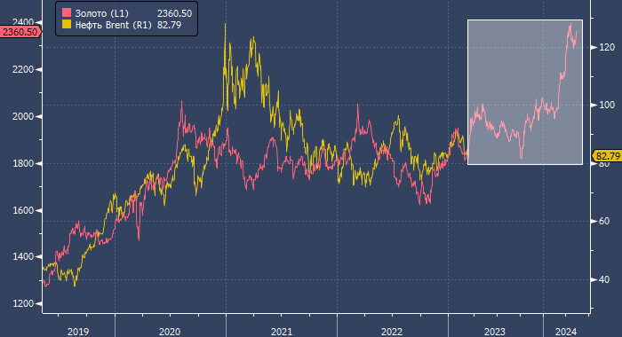 Золото и нефть имеют сильную историческую корреляцию, но есть нюанс: нефть повторяет движения золота спустя двадцать месяцев. Цена золота (розовым) и цена нефти Brent (желтым), сдвинутая на 20 месяцев назад, интервалами 1 день Золото не только представляет собой защитный драгоценный металл, но и имеет дополнительную ценность благодаря тому, что оно «знает» полезные вещи о будущем. Одна из них — куда пройдут цены на нефть. Приведенный выше график показывает высокую корреляцию между золотом и нефтью, но есть нюанс: нефть повторяет движения золота спустя двадцать месяцев. Эта модель неидеальна, т. к. некоторые события, вроде начала СВО, разрушают указанную выше корреляцию. Тем не менее на большом отрезке времени корреляция всегда возвращается, что наделяет модель большой предсказательной силой. На данный момент модель предполагает, что цены на нефть сформируют среднесрочное дно примерно на стыке II и III кварталов, после чего заметно вырастут к концу года. Учитывая недавнюю динамику цен н