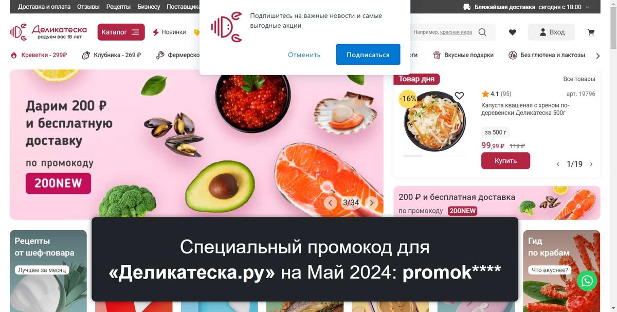 Еще больше выгодных промокодов для «Деликатеска.ру» на Май 2024 на Сайте