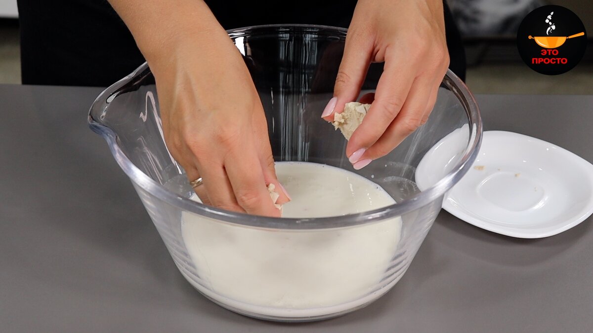 Сегодня я расскажу рецепт дрожжевого теста, которое остаётся мягким и свежим, и не черствеет. Мы приготовим воздушные булочки с нежной творожной начинкой. Покажу, лёгкий способ формовки, чтобы начинка не вытекала и чем лучше смазывать выпечку, чтобы она была глянцевой и румяной. ИНГРЕДИЕНТЫ: молоко - 150 мл кефир (2,5%) - 100 мл дрожжи свежие - 20 г сахар - 80 г соль - 0,5 ч.л. ванилин (интенсив) - щепотка яйца - 2 шт. сливочное масло (мягкое) - 50 г мука - 500 г Начинка: творог - 350 г сахар - 3 ст.л. ванилин (интенсив) - щепотка желток - 1 шт. Для смазывания: желток - 1 шт. молоко - 2 ст.л. СПОСОБ ПРИГОТОВЛЕНИЯ: Начнём с опары. В миску выливаем 150 мл тёплого молока и 100 мл тёплого кефира, добавляем 1 ст.л. сахара, которую берём из общего, указанного в рецепте количества (остальной пока отставляем в сторону) и разламываем на мелкие кусочки 20 г свежих дрожжей. Перемешиваем венчиком до однородности и добавляем несколько ложек просеянной муки (тоже из общего количества, указанного в