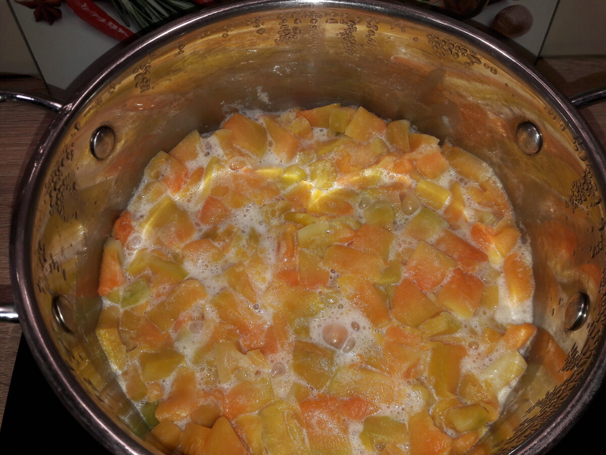 Доброе утро, мои читатели! Я НЕбольшой любитель готовить. Поэтому буду по возможности делать фотоотчёты с описанием и оставлять здесь. Для себя. Ну и для Вас. Начнём. Нашла в закромах морозилки тыкву кусочками. А в холодильнике молочко. И рецепт возник сам собой. Залила тыкву совсем небольшим количеством молока (можно использовать воду) и довела до кипения. Сняла кастрюлю с огня. И толкушкой измельчила (несильно). Мне всё-таки нравится, что бы чувствовались кусочки тыквы. Если Вы фанат пюрешек - измельчайте получше. Вместо толкушки можно использовать блендер. Залила в кастрюлю молоко (комнатной температуры!) и поставила на несильный огонь. Молоко выбирайте качественное (с хорошей жирностью), что бы не свернулось. Я любитель покупать молоко длительного хранения. Мне кажется оно лучше подходит для готовки. Ну и вероятность свернуться у него меньше. Дальше насыпала в тарелку овсянки (на глаз). Овсянку беру длительного приготовления. НЕ пятиминутку. Кстати, точные пропорции осознанно не г