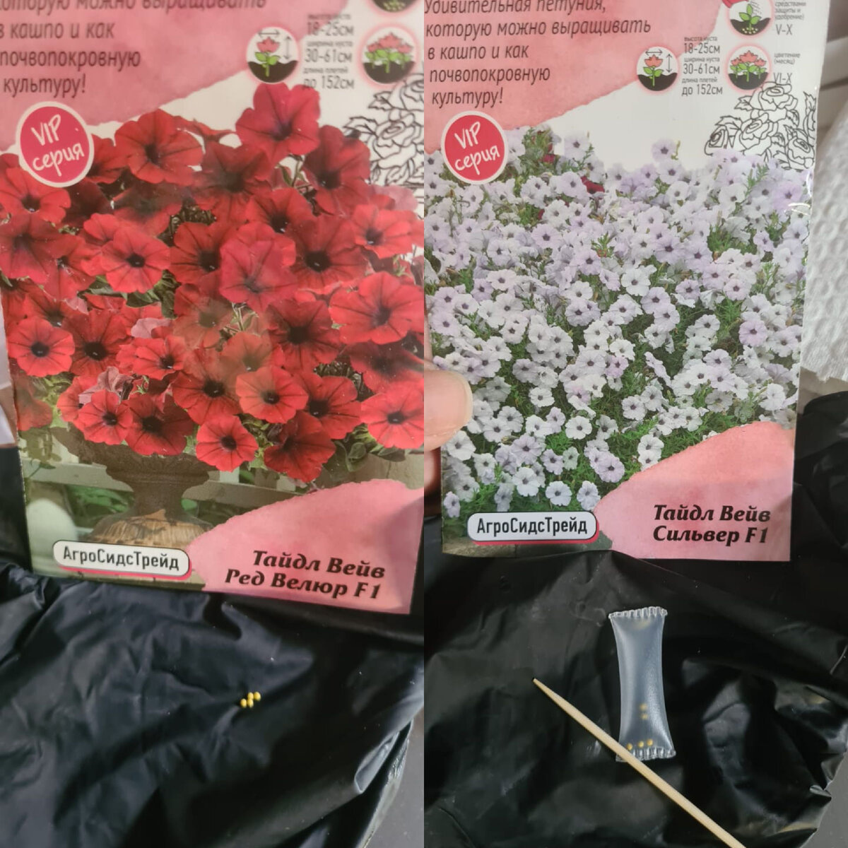 Сегодня мне стрельнуло начеренковать петуний. Зачем? Сама не знаю. Интересен процесс и результат. Выращивать их из семян у меня терпения нет, не люблю такую мелочевку, над которой и дышать страшно. Чихнешь и все, нет семян! Посмотрите, какие семена, это они еще в оболочке. Работать с ними нужно мега аккуратно. Оболочка раскрошится и семечко не найдешь. Петунии, наверное, стоят дороже золота, если сравнить стоимость грамма. В одной пачке 5 семян в надутом пакетике. И цена начинается от 150 рублей за пачку. Вот так рассада у сестры выглядела в апреле. Надо сказать, что это одна из самых дорогих разновидностей петуний - Тайдл Вейв. Но кусты вырастают огромными и оно того стоит. В рассаде она довольно таки крепка. На днях я показывала видео с посылкой от сестры, так вот, самую рослую петунию я и начеренкую. Если пропустили видео, то можете посмотреть его сейчас и узнать, что старшая сестра младшей нарастила👇 Процесс черенкования я примерно поняла, сложного мало, но на все нужен опыт и тр