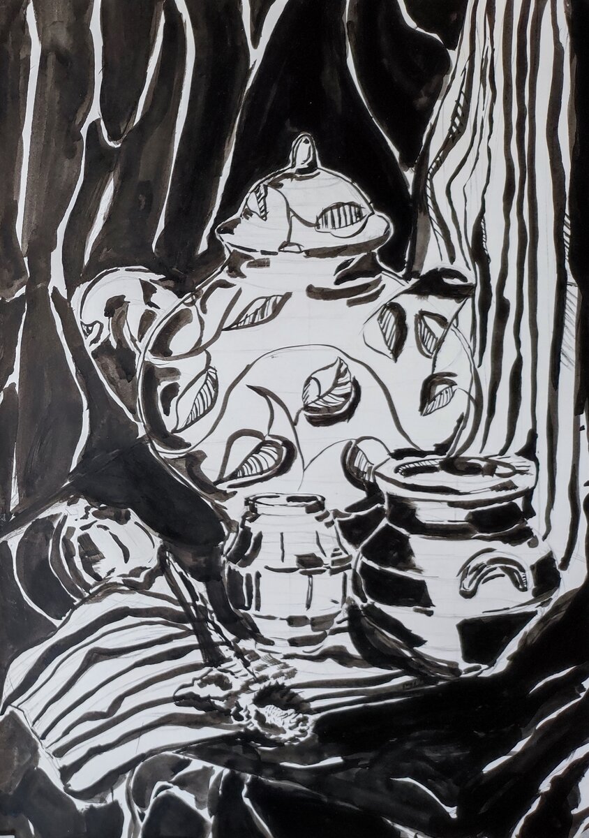 Тушь, бумага 42х60 см Автор: Полина Р. 2023г