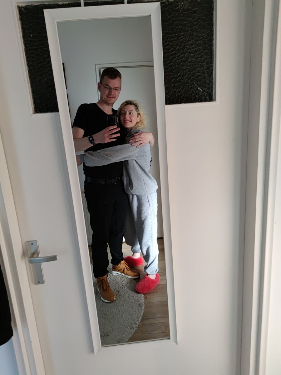 Стеффан купил для меня, в свою квартиру зеркало, потому -что у него зеркал дома нет, кроме одного в ванной комнате:) А я уже несколько недель канючу у него зеркало, и он сказал, пообещал и выполнил, ведь я же девочка, говорит, мне положено 🤭 Я выбрала зеркало, которое очень подходило и по функционалу, его не нужно не ставить,ни прикручивать,а просто повесить на дверь..и по цене, чтобы не сильно тратился на меня 🤭:)) Когда мы выбирали его, оно стоило 25 евро,но когда приехали его покупать, то уже была скидка и стоило 17 евро! Это дешевле чем на АлиЭкспресс настольное, маленькое зеркальце!Это удача,я считаю! И в разы дешевле того, что он купил мне в Икеи ко мне в комнату в шелтор. Вчера,мы уже по традиции позавтракали мюсли с фруктами (Стеффану нравится, говорит, что потом он полон энергии) Я, пока он на работе, позанималась голландским языком, физио, поскладывала чистое белье, загрузила стирку снова,и посудомойку, прибралась в квартире. И написала ему, может поедим сегодня гречку с