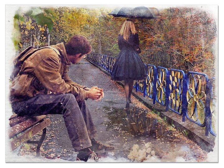 Этот день выдался пасмурный и холодный. В парке никого не было, кроме одной пары. Он сидел неподвижно, она смотрела на мокрый асфальт. Девушка была явно чем-то недовольна. Парень смотрел на неё, не понимая, что делать дальше.