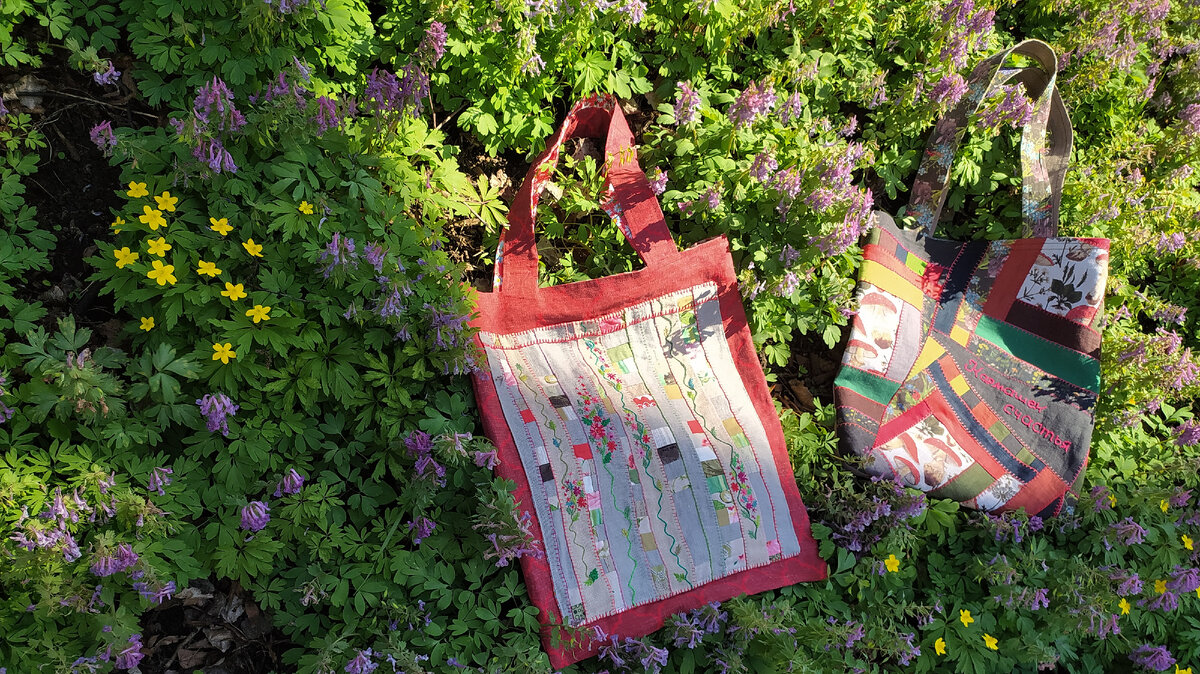 Предлагаю рассмотреть две такие сумки, сейчас они пока дома. И вот мы втроëм вышли на весеннюю прогулку, напитаться счастьем цветения, силой жизни. И показаться всему миру - пусть тот, кому такая сумка необходима (для прогулок, шоппинга, на пляж, просто удобно и красиво жить) откликнется. Всë, что я шью и вам здесь показываю, можно либо купить либо заказать похожее. Удобно ВКонтакте, можно и на эл. почту написать, адрес в описании этого канала. Товары подробнее смотрите, выбирайте и заказывайте в группе Кармашек счастья ВК Лоскутная сумка «Тропинки летнего сада» Особенный гербарий, неувядающая красота. Тропинки я постелила льняные. Цветочки по ним вышила нежные, тонкие, стебли вьющиеся. Лоскутная мозаика складывается в пространство воображаемого поместья, где обитают... ...а никто пока не обитает - шоппер свободен. Рассмотрите детали и решайтесь, возможно, это ваш сад? Наполненная ветром, эта сумка - немножко Алые паруса, да? Снаружи огромный карман на магнитной кнопке - вс