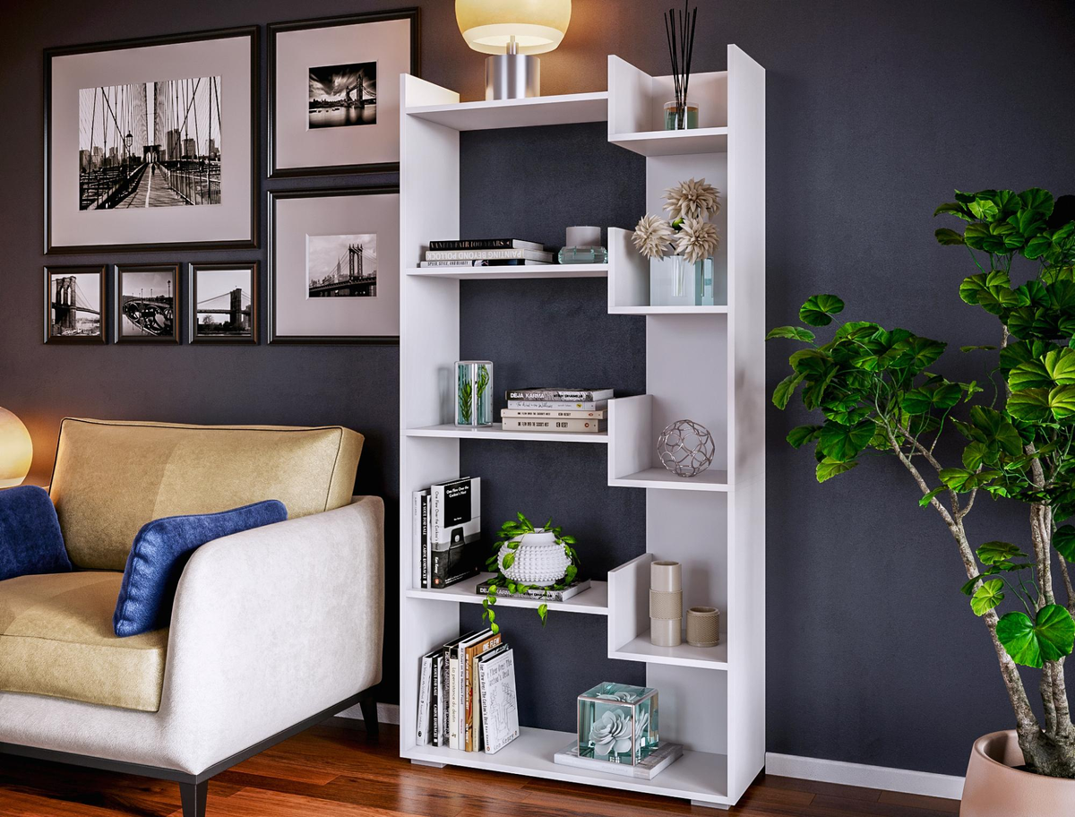 Стеллажи — простые многоуровневые системы хранения без глухих задних стенок и дверец спереди. Обычно они состоят сразу из нескольких полок, закрепленных на боковых стенках конструкции. Это легкая удобная мебель, которая не загромождает комнату. Сегодня в продаже можно найти варианты под любой стиль интерьера — от лаконичного хай-тека до помпезного барокко. Стеллаж для зонирования чаще всего используют в двух случаях: когда квартира очень маленькая и в ней нужно эффективно использовать каждый сантиметр или, наоборот, очень большому пространству требуется добавить уюта и приватности. Стеллажи берут на себя сразу несколько функций: Стеллаж-перегородка коллекция НьюТон Грэй Стеллаж широкий Белый коллекция 2+2 Стеллаж открытый коллекция НьюТон Грэй Стеллаж трансформер коллекция Ньютон Грэй Если нужно добавить максимум приватности выделенной мебелью зоне, следует выбирать высокие конструкции. Желательно стеллажи, уходящие под самый потолок, чтобы и пространство наверху работало. Стеллаж — эт